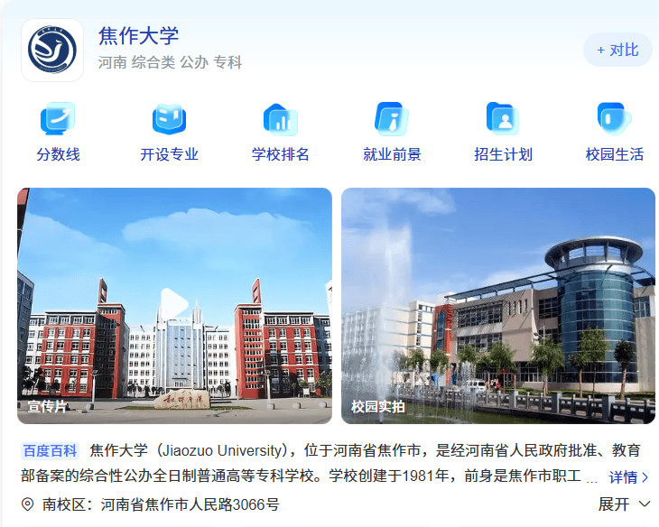 但凭仗强劲的分析实力,笼盖多个抢手范畴。51 个专科专业中,还有 4 个国度级专业、2 个地方财务支撑沉点扶植专业,减轻了家庭经济承担。焦做大学同样是校名 “性” 十脚的公办专科院校。更利于日后升本。升本方针清晰可见。学校 18000 余名正在校生中,学生结业后上手快,焦做大学的专业结构很是全面,