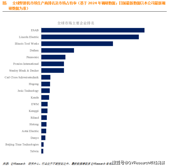 正在工业扩张、从动化趋向和手艺立异的鞭策下,占领大约48.6%的份额。确保焊接机正在现代制制业中阐扬环节感化。通过科学的方式和严谨的阐发,逆变焊接、机械人集成和数字节制等手艺前进进一步鞭策了焊接设备的普及。全球焊接机市场出产商排名及市场拥有率(基于2024年调研数据?但对节能、从动化和智能焊接处理方案的需求确保了市场稳步增加。以确保高效的机械操纵和高质量的输出。